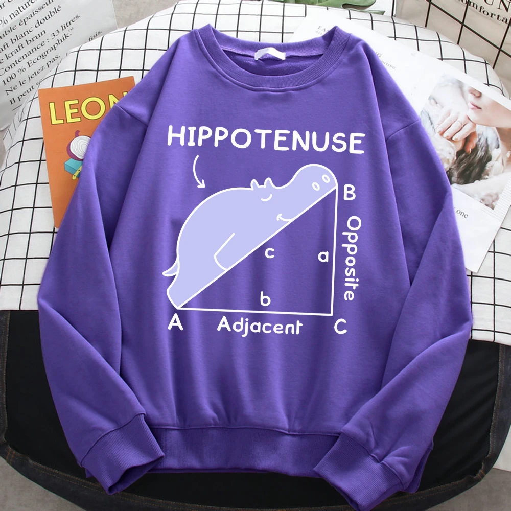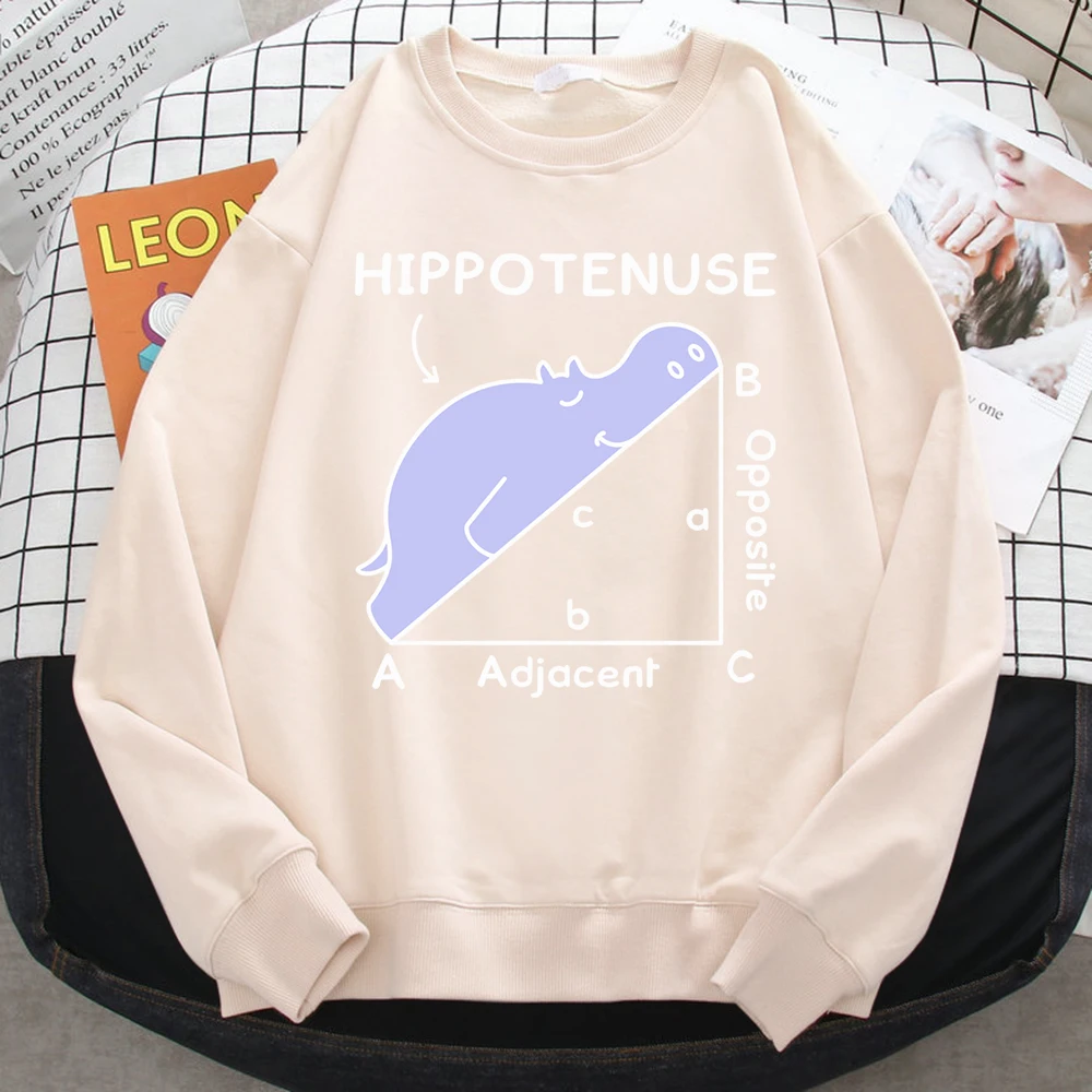 KısaKöşegen | Autumn Sweatshirt - Matematik Problemi Baskılı Hipopotamlı Kapşonlu Kadın Hoody